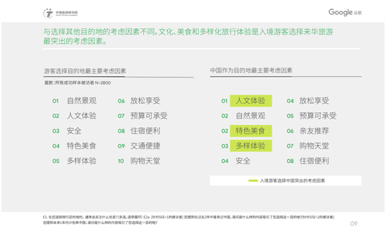 《报告》指出,在入境游客选择目的地时,自然景观、人文体验和安全是最主要的影响因素,而考虑中国作为目的地时,文化、美食和多样的旅游体验更加突出。