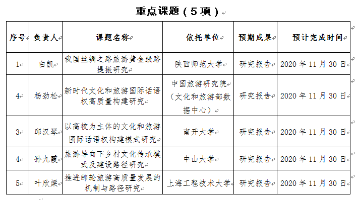 2020年文化和旅游宏观决策课题已完成受理申报、资格审查、评审和审批等程序,现将课题立项名单予以公布。