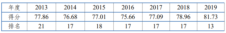 图2: 2013-2019年中国赴马来西亚游客满意度
