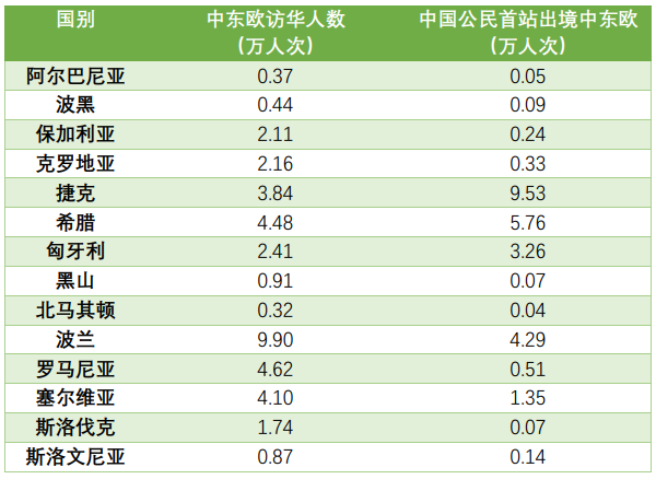表2:2019年中国与中东欧国家游客互访总量