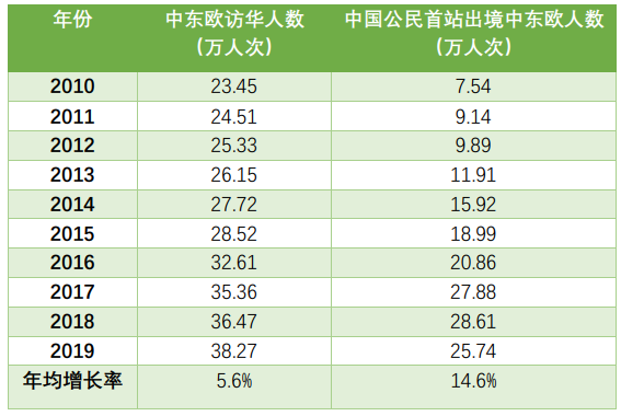 表1:2010-2019年中国与中东欧区域游客互访总量
