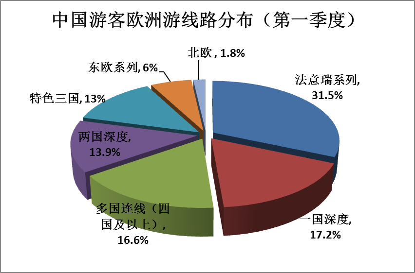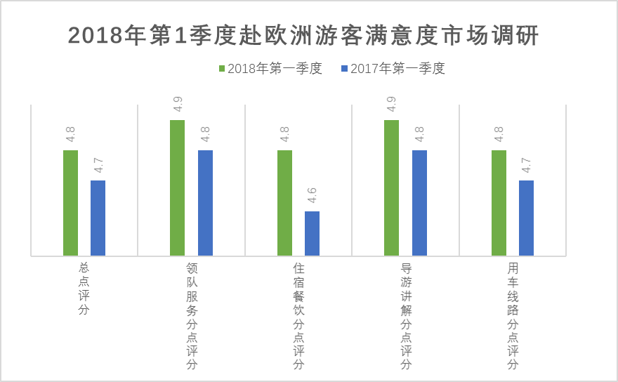 一季度,中国赴欧洲游满意度同比有所提升。旅游企业为提升客户满意度做了很多持续的努力,携程发布了“跟团游体验保障”、自由行微领队、全球旅行SOS;华远国旅推出“导游服务指南”、“行程助手”等导游管理、领队关怀、技术支持。从携程平台上数千条欧洲游产品的客户点评看,赴欧旅游总体点评分为4.8分(满分5分),比去年同期增长0.1分,领队服务、住宿餐饮、导游讲解及用车线路各项点评都呈现上升趋势。